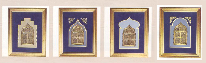Contour en coupole arrondie. On a d'abord pratiqué une ouverture circulaire à l'aide d'une machine à ouvrir les ronds et les ovales. La fenêtre rectangulaire a été réalisée ensuite. Seule la moitié supérieure du cercle reste apparente et forme la coupole, sur le pourtour de laquelle ont été appliquées, comme pour la deuxième solution, deux frises dorées.